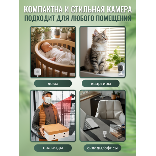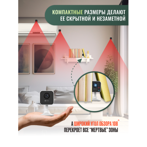 2 МП Внутренняя Wi-Fi камера c ИК-подсветкой до 12 м. 1/3'' Матрица CMOS; объектив 2.8 мм.; угол обзора: 108° (по диагонали), 91° (по горизонтали), 50° (по вертикали); ИК-фильтр; 0.5лк @F2.2; DWDR, 3D DNR; встроенный микрофон и динамик; обнаружение движения; поддержка microSD до 512 ГБ; -10°C ...+45°C; 3 Вт макс.